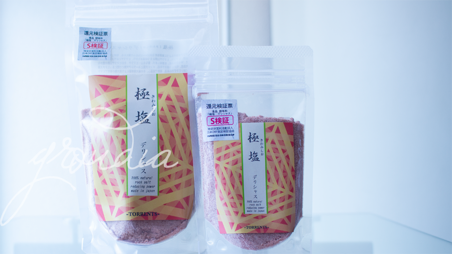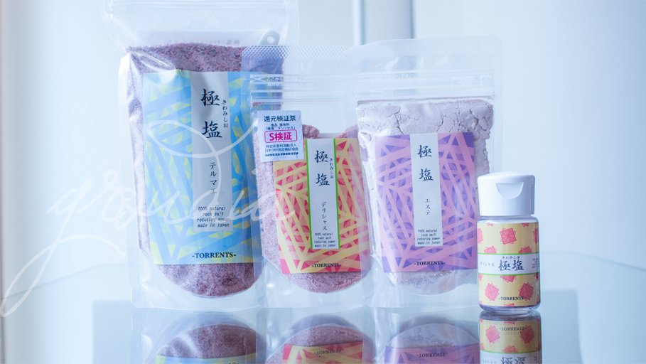 極塩は主な商品で特定非営利活動法人日本ORP測定検証協会による酸化還元電位値の厳格な測定を受けて、還元(抗酸化)を長時間示したスペシャルを意味する「S検証」を受理しています。